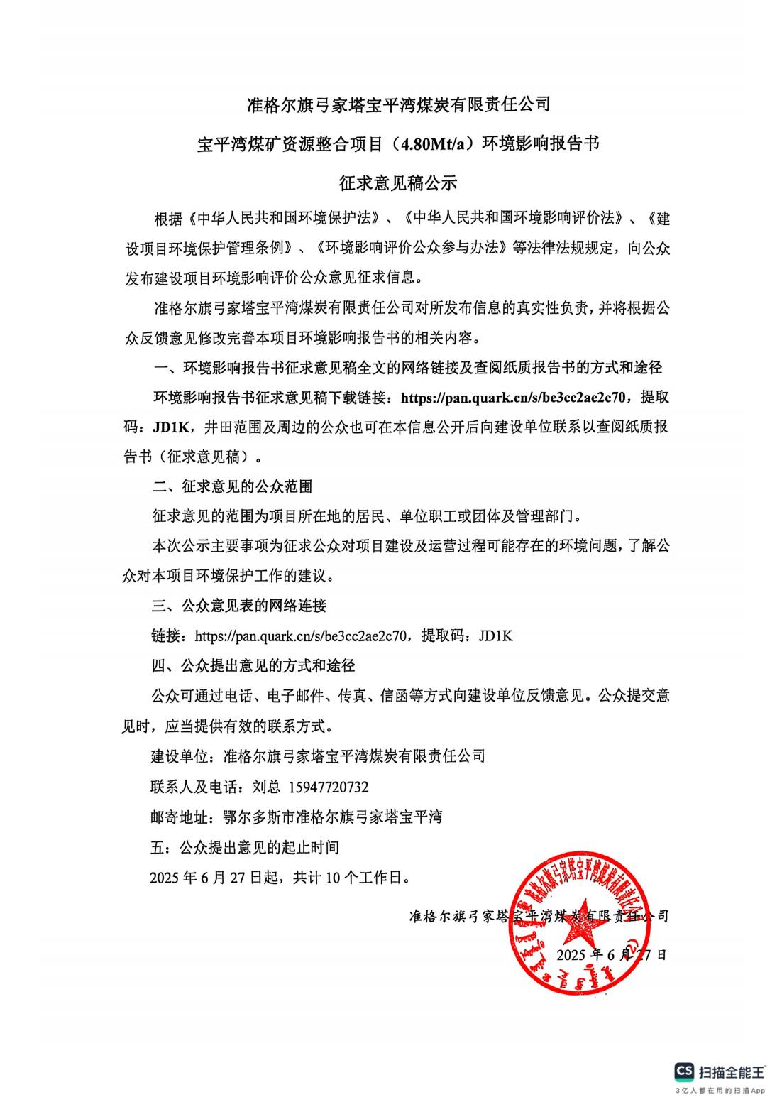 寶平灣煤礦環(huán)評(píng)征求意見稿